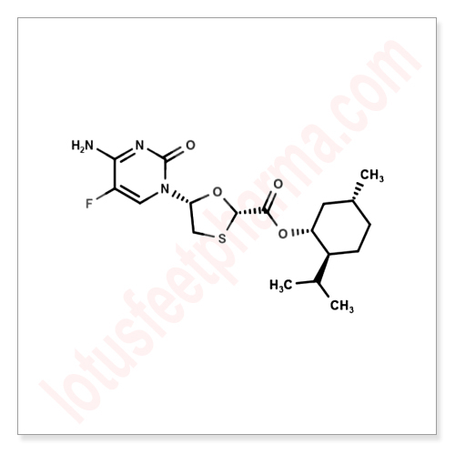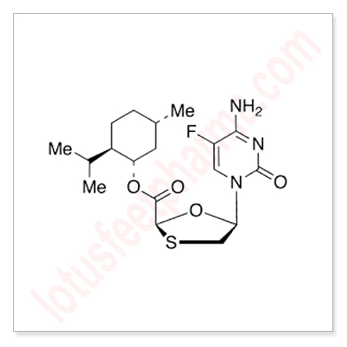 Chemical Name :Emtricitabine Impurity V;(2S,5R)-5-(4-Amino-5-fluoro-2-oxo-1(2H)-pyrimidinyl)-1,3-oxathiolane-2-carboxylic Acid (1S,2R,5S)-5-Methyl-2-(1-methylethyl)cyclohexyl Ester;5-Fluoro ent-LaMivudine Acid D-Menthol Ester